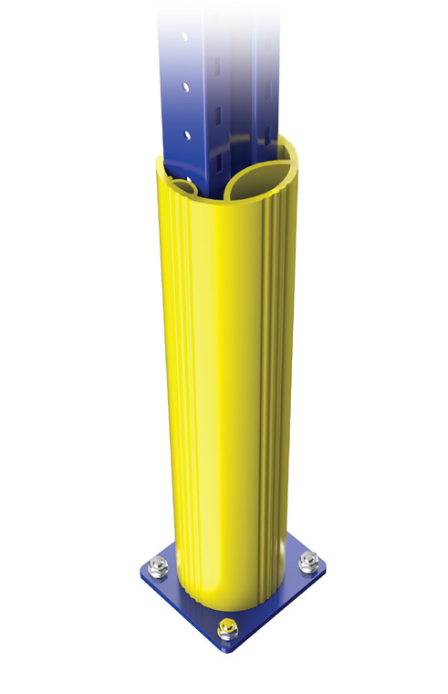 Zabezpiecza regały i półki paletowe od uderzeń wózków widłowych i innych pojazdów w celu zachowania nienaruszonego stanu regału, uniknięcia napraw lub awarii, a także w celu zmniejszenia strat towarów i zredukowaniu ilości wypadków przy pracy.